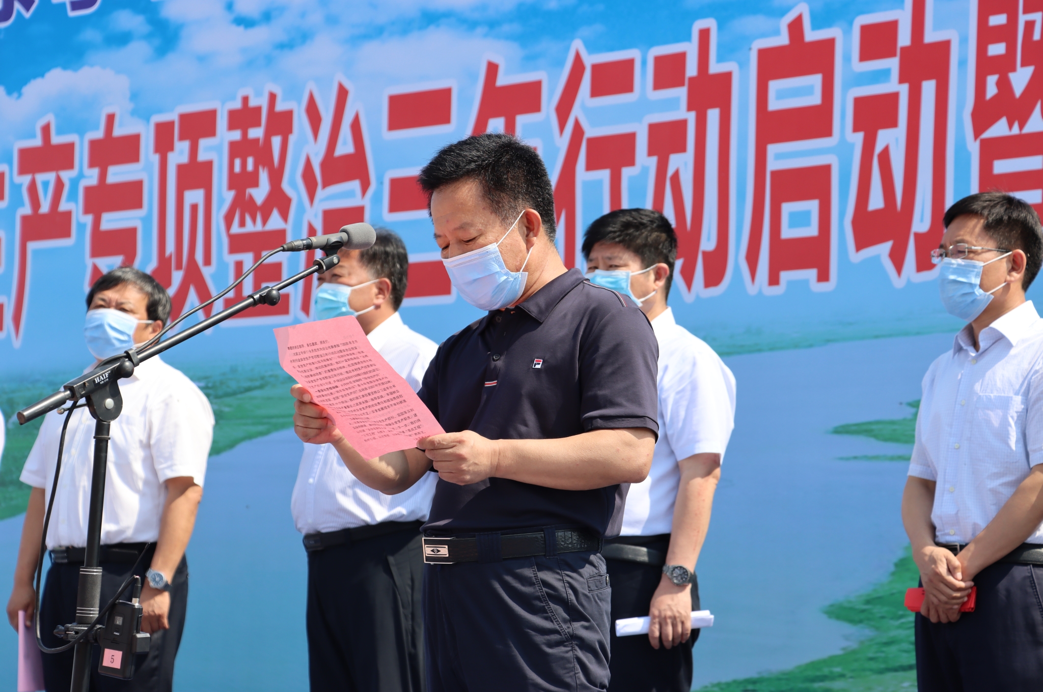 為了深入貫徹落實習近平總書記對安全生產的重要指示批示精神,結合全國第19個安全生產月,6月19日上午,2020年全市水利行業安全生產專項整治三年行動啟動暨安全應急演練安全生產標準化現場觀摩會在沾化區秦口河除險加固工程安全標準化工地召開,市水利局、各縣區水利局、濱州市水利資源開發建設中心、市引黃灌溉管理服務中心、市水利工程處、市水利設計院等水利行業部門負責人共200余人參加。