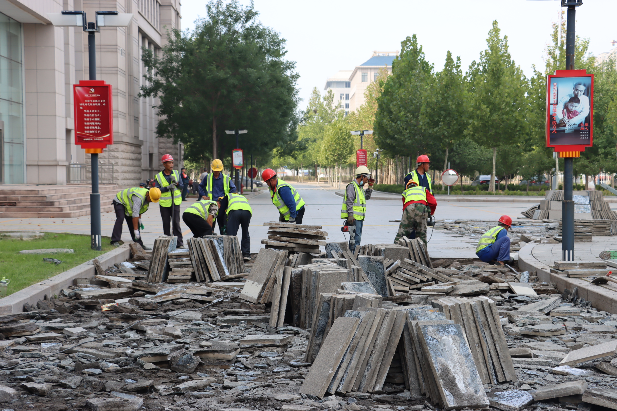 行政大廈廣場維修工程,參建人員堅守在施工一線,圍繞“搶工期、重安全、抓進度、保質(zhì)量”四個中心,齊心協(xié)力推進工程進度,他們以“工匠精神”打造精品工程,以昂揚的姿態(tài)跑出高質(zhì)量發(fā)展“加速度”。