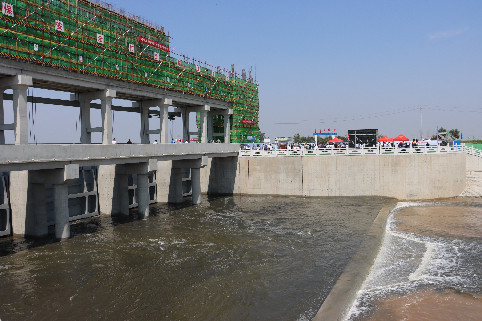 演練結束后,與會人員在山東省沾水建設工程有限公司管理人員的帶領下,有序參觀了秦口河下洼閘施工現場、辦公、宿舍等區域,觀摩人員對該項目美觀大氣、文明有序、安全高效的施工現場給予高度好評,紛紛表示將認真學習和借鑒。